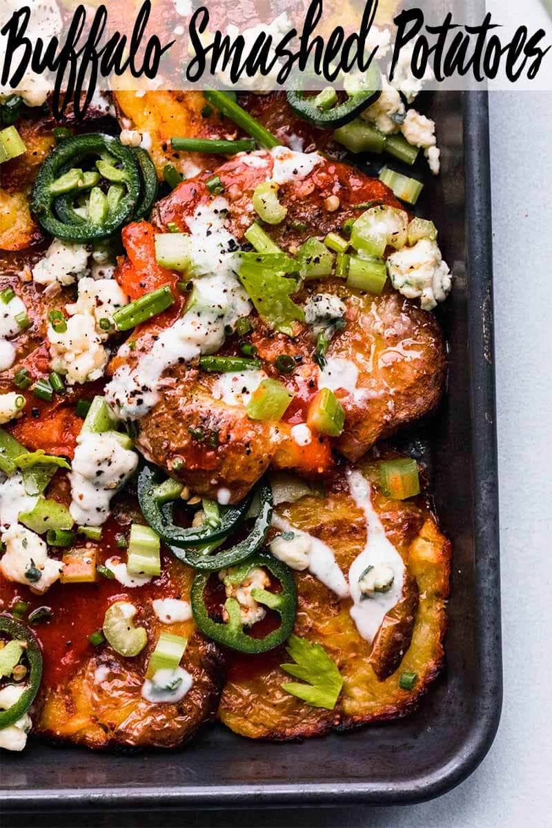 #Crispy | Crispy Smashed Buffalo Potatoes are crazy good! This recipe is like a mash up of buffalo wings, nachos, and tater tots in the best way possible!