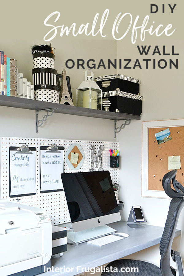 #Office | How to make the most out of small office space design with DIY wall-to-wall shelves, pegboard walls, and budget-friendly repurposed pegboard accessories.