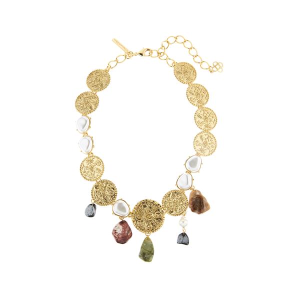 #Necklace | Crafted from plated coins and semiprecious stones this necklace will make a statement when worn against a simple dress or basic blouse.